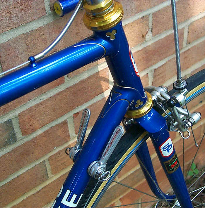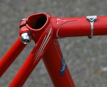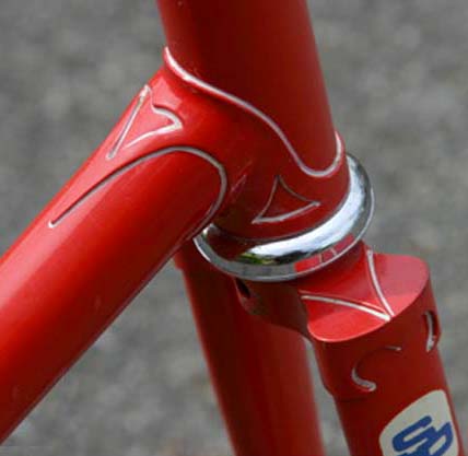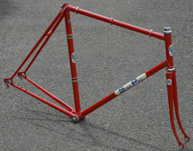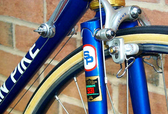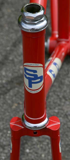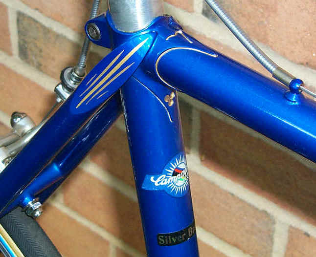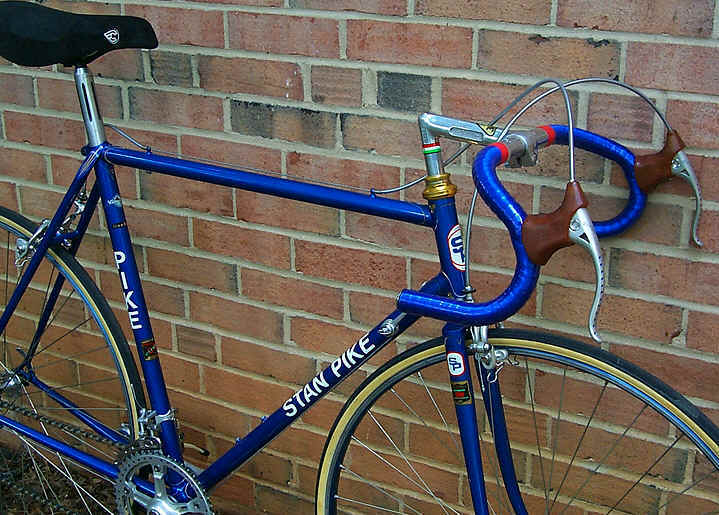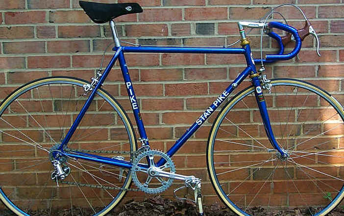 Stan Pike, noted for his care of assembly and accuracy, started building in the early 1970s and passed away in 1983. He had worked at Westland helicopter factory before he became a full time frame builder. He was responsible for teaching Arthur Needham at Argos how to build frames. He also preferred silver brazing (note the small decal on the seat tube proclaiming that on Wayne’s bike below.)