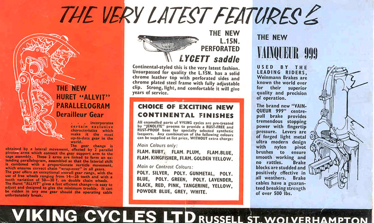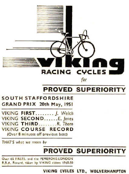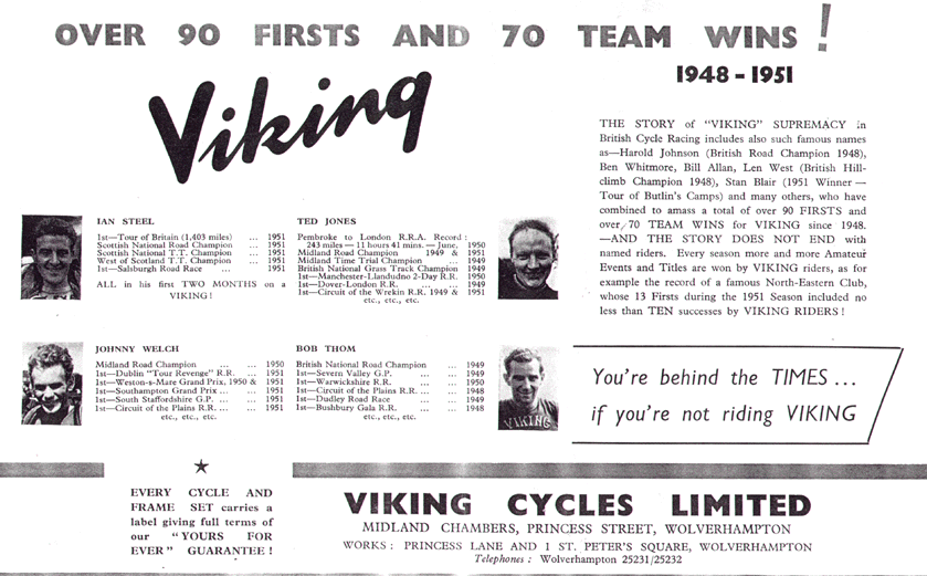 Production of lightweights began again in 1947 once the restrictions on steel usage were relaxed and in 1948 Viking introduced its road racing team. Many wins followed with riders such as Bob Thom, Ben Whitmore, Harold Johnson, Bill Allan and Len West (later to ride for the Frejus/Superga team) taking the honours.