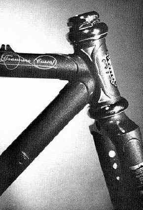 Francesco Cuevas, originally from Spain, was a citizen of the world until he came to settle New York City in the 1960’s. He was known to build his frames in the Old World style, that is to say using brass rod for brazing rather than the new fangled Silver “solder” and forsaking a jig, but “using the eye”. Nonetheless, his work had an artist’s flare and appeal. Francisco Cuevas has retired to Barcelona, Spain, with his wife and daughter. His son, Andreas, continues the tradition.