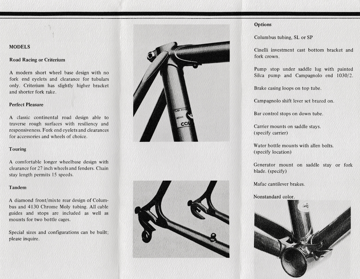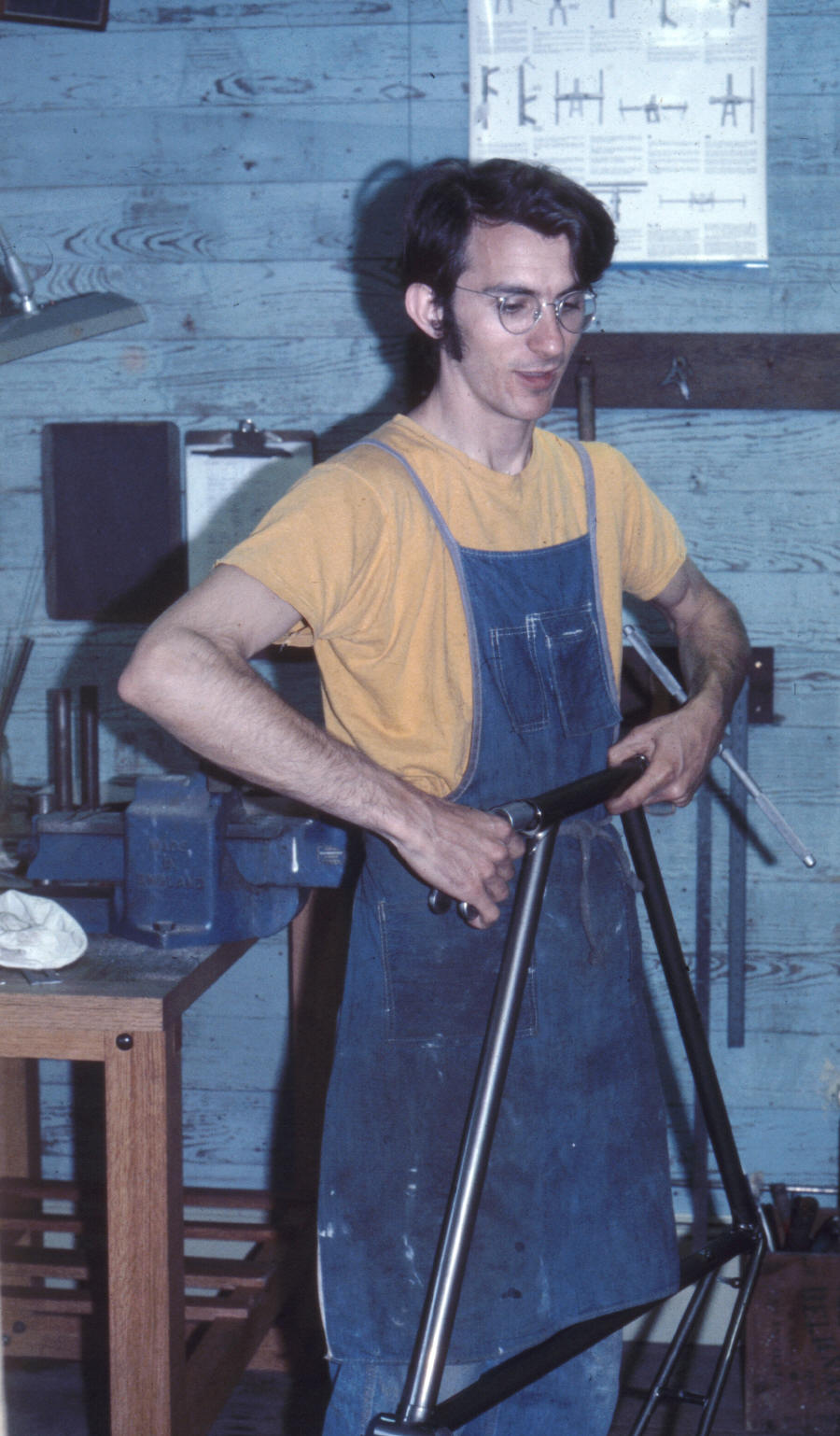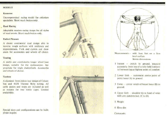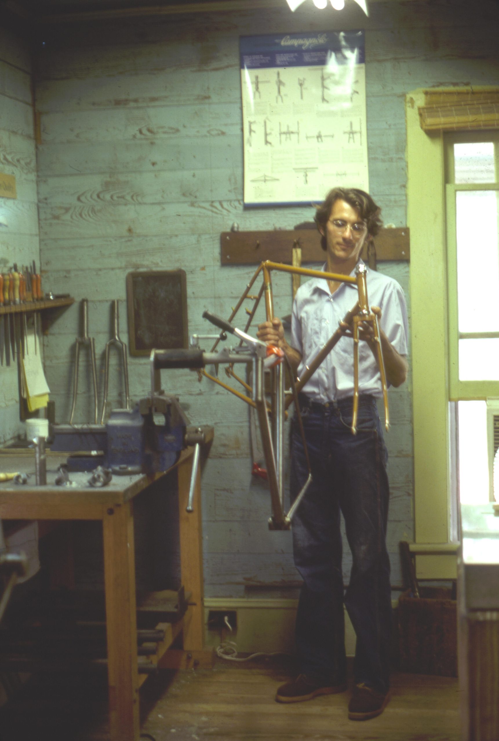 I took the B&W photos for his first brochure, and he & I argued because he didn’t want any superlatives in the text… He said people could just look & see his workmanship, so he didn’t want to brag about it… and if they didn’t see the quality of the work, he thought they should wait till they were more knowledgeable before getting one of his bikes!