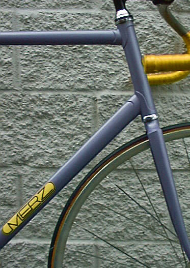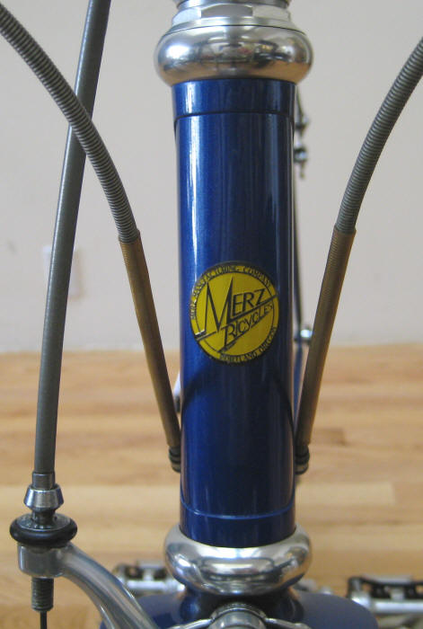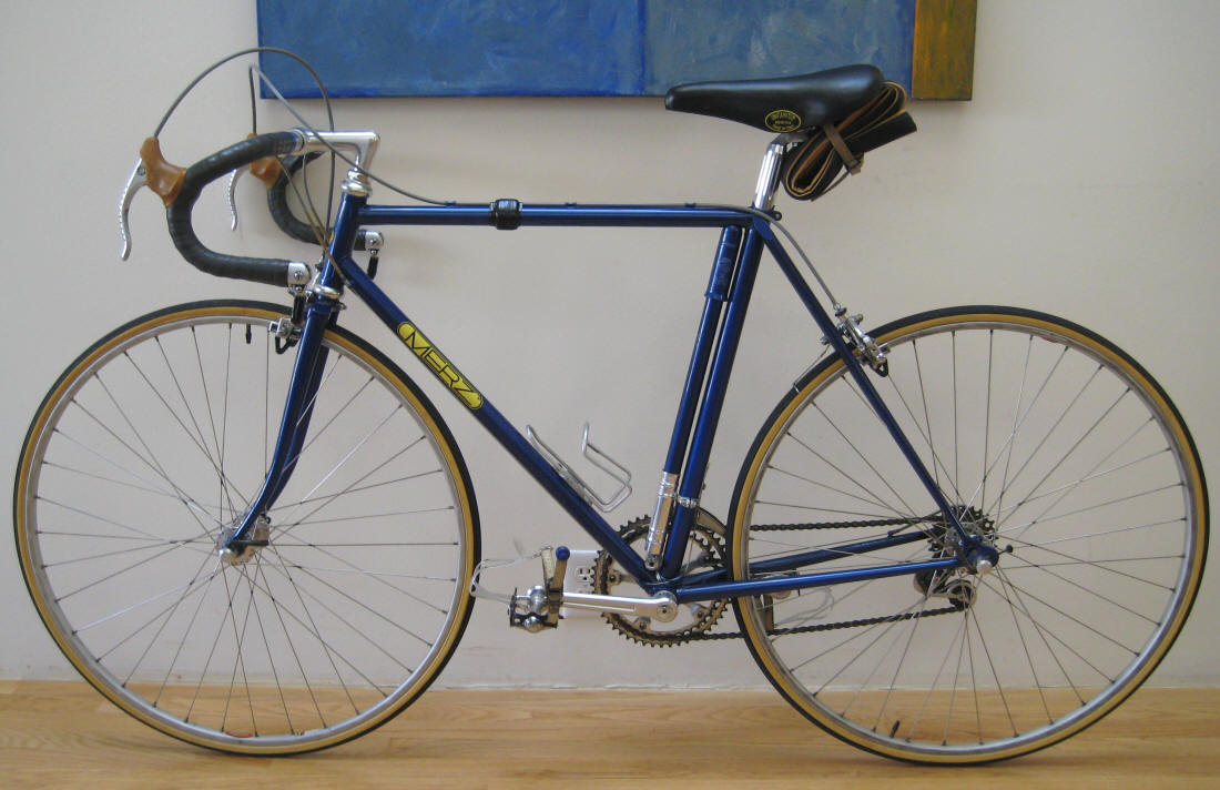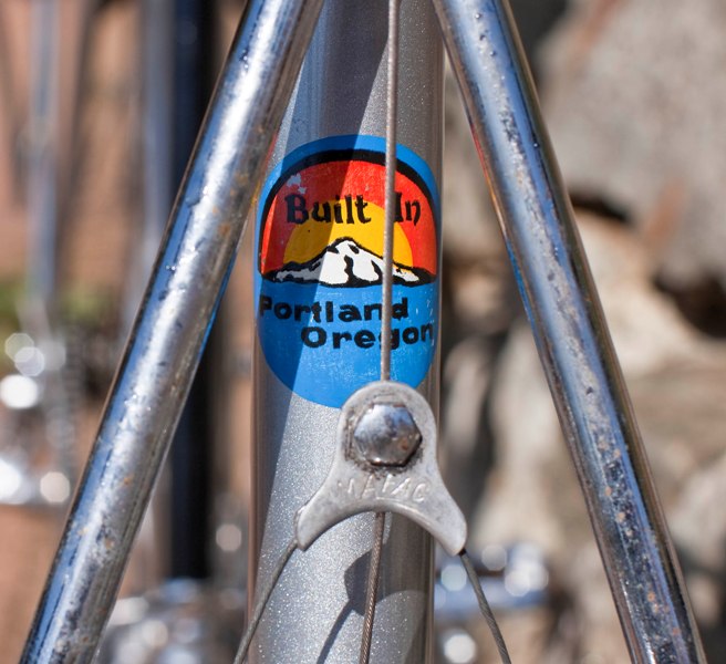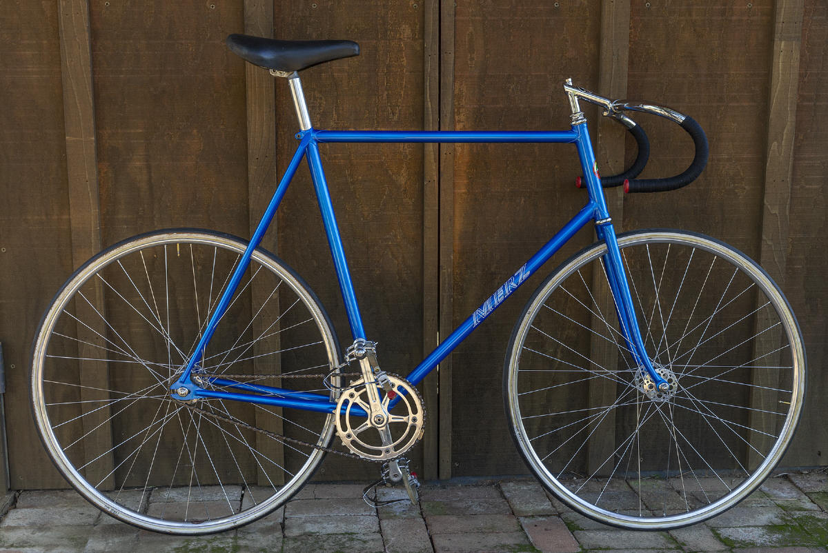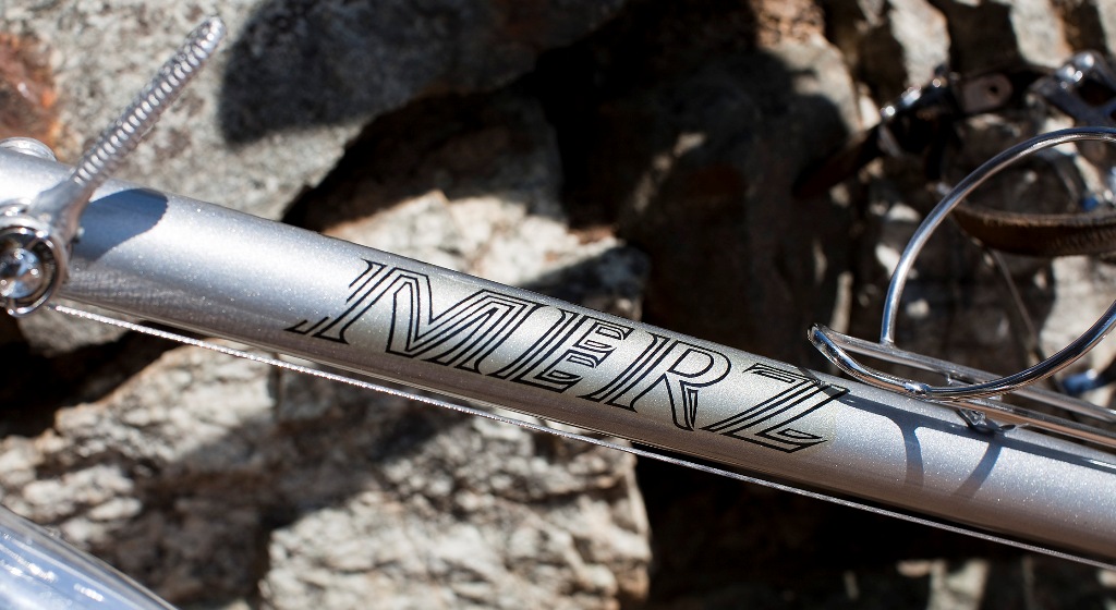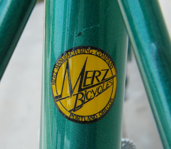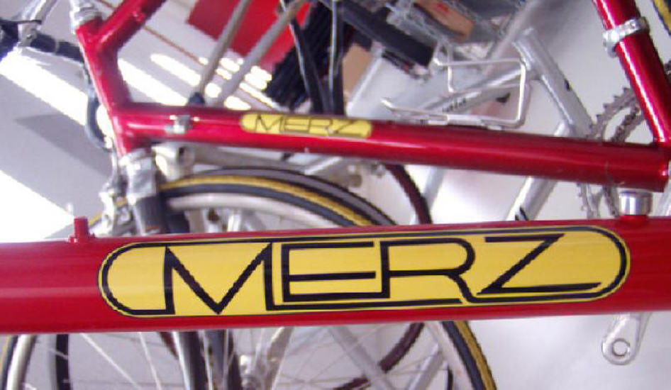 “Jim Merz built bike frames in Portland, OR from 1973 until late in 1982, then he shut down his shop and went to work for Specialized as a designer. Merz could build a track or ‘cross bike, and built superlative road racing bikes, but touring bikes were where he stood out. He made bikes with tubular steel racks–generally shorter and quicker steering than most other touring rigs of his time–and matching panniers also made in Portland.” “Jim started riding a Campagnolo equipped bike in 1964, just after high school. Jim worked as a machinist and taught himself frame building from his metalworking background. He opened his own shop at NW 21st and Everett. Over 400 frames were produced, using Columbus, Reynolds 531 and 753 tubing including two 753 frames (He was the first USA builder certified to use 753) for pro rider George Mount. Merz used BCM lugs and crowns, finished seat stays with flat tops a la Schwinn Paramount, and decorated the bikes with simple graphics and paint. His painter was Virginia Church.” “To this day, many Portland bikies consider Merz machines in high regard, even the best bikes ever made. Jim was a resident of Bainbridge Island, WA, working for the Browning company, until his recent return to Specialized as their “Master frame builder”.