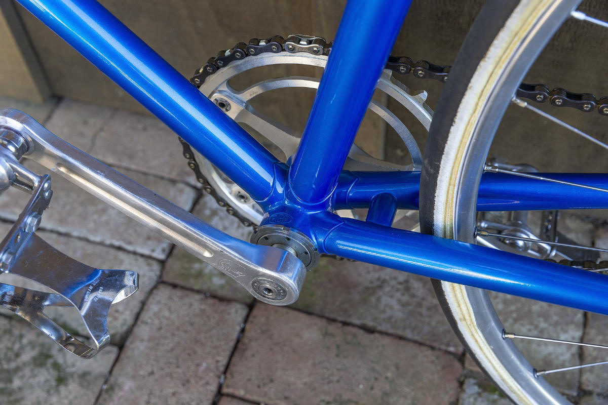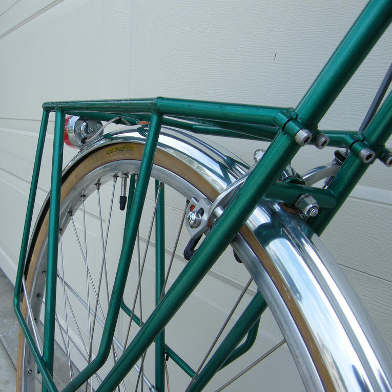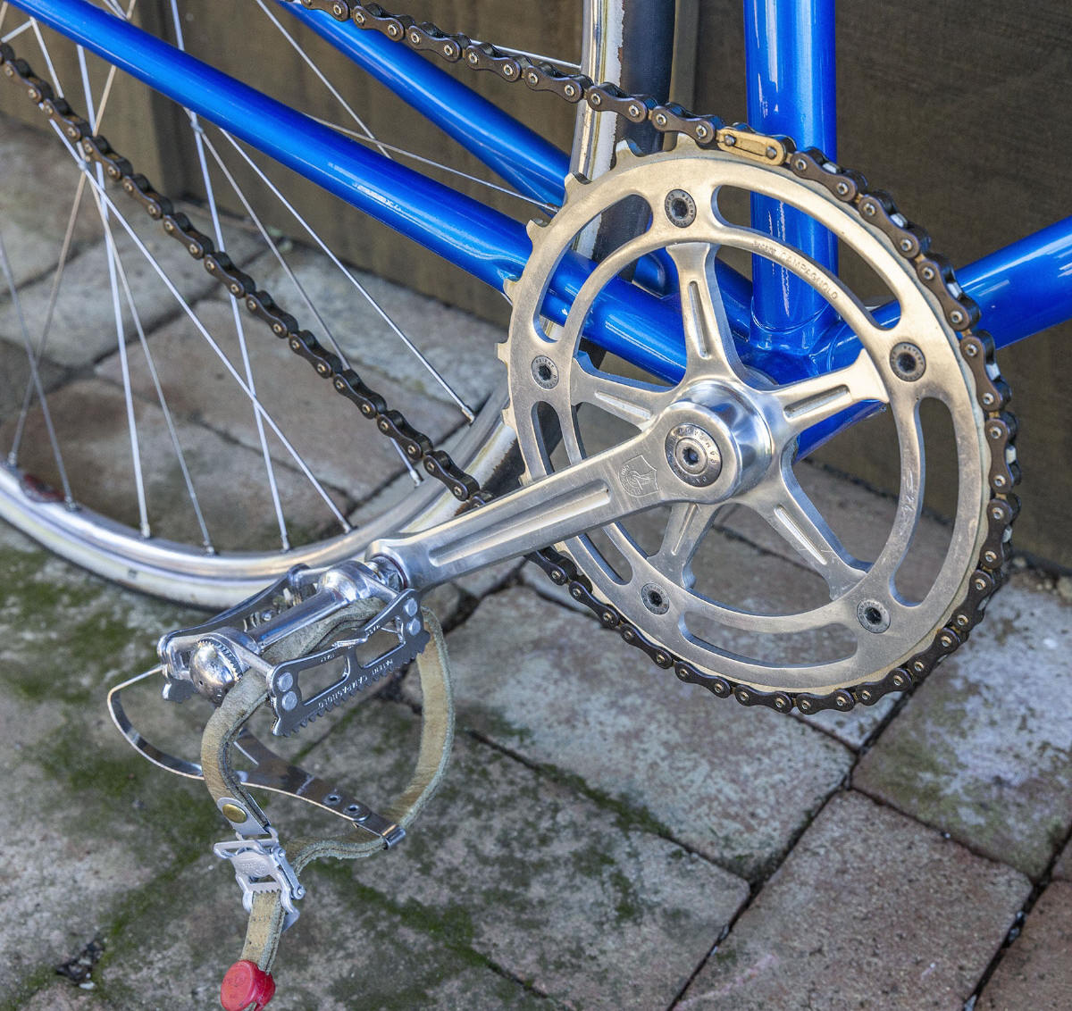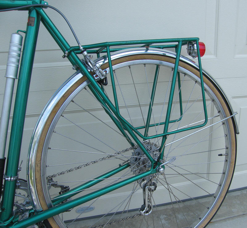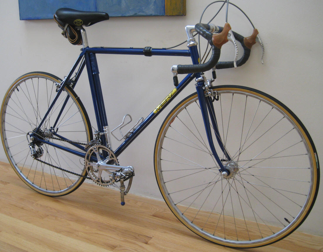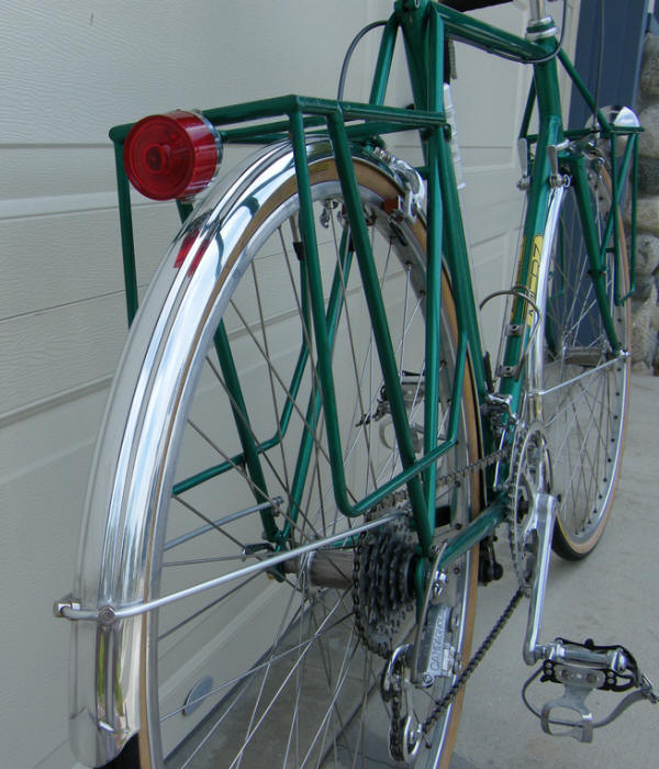 “…made in 1978…bought it back from the original owner, looks like he did not use it. The fenders were Bluemels and were brittle so I put some alloy fenders on. I also put new tires on, although it had the originals . The cage is also new. The racks were made by me, along with the 31 tooth front chainring. The wheels are 700c. Even he bar tape is original. The bike is my size!”