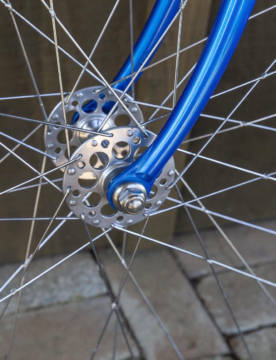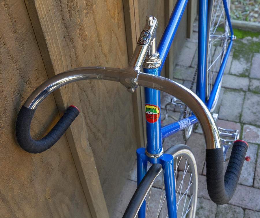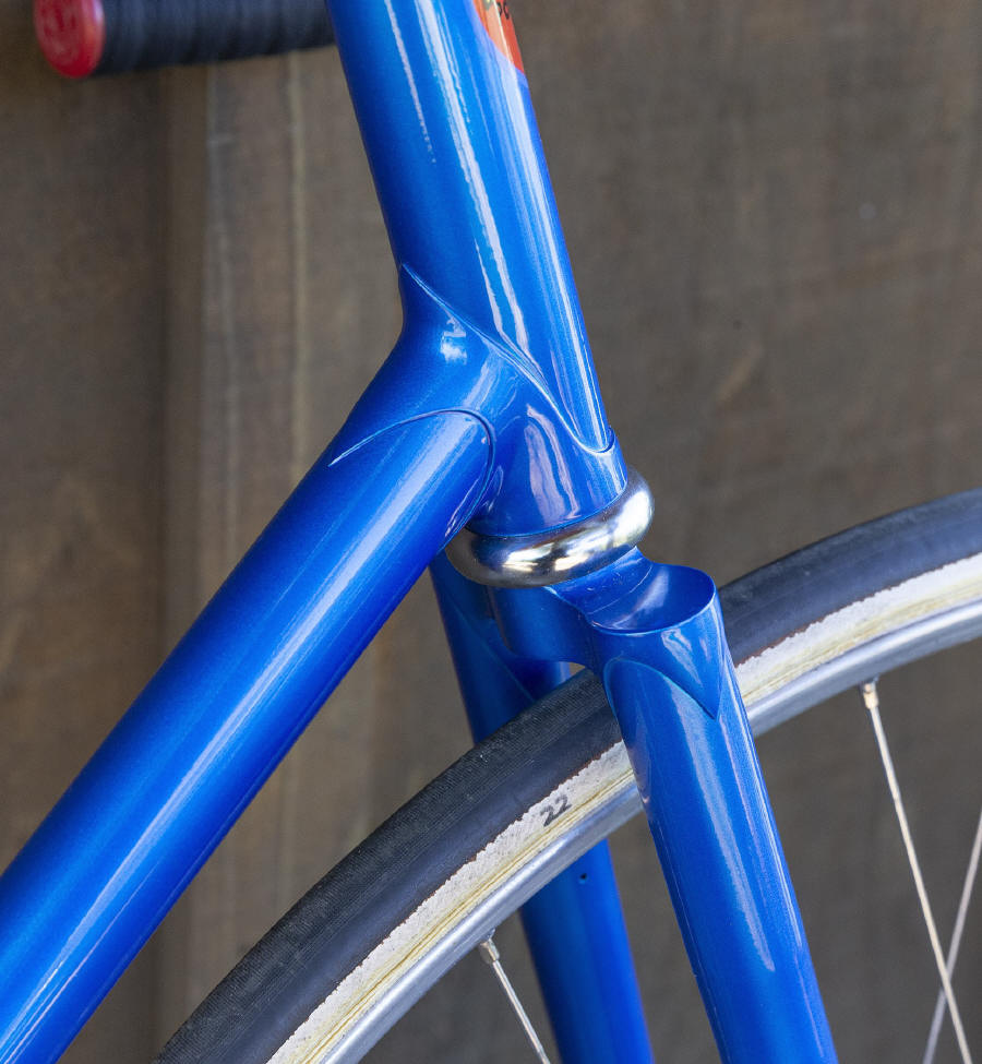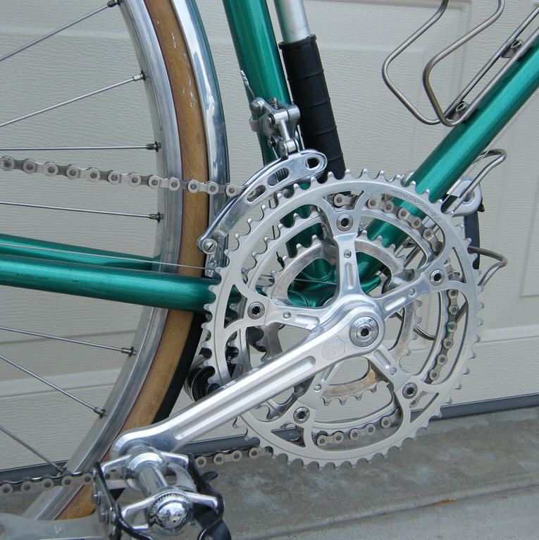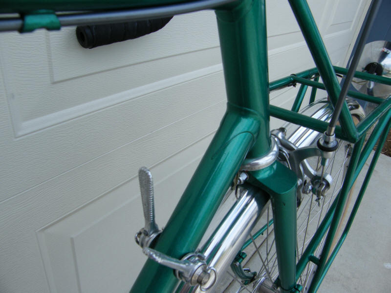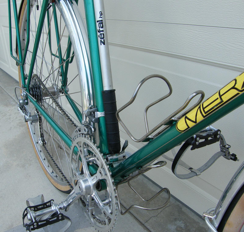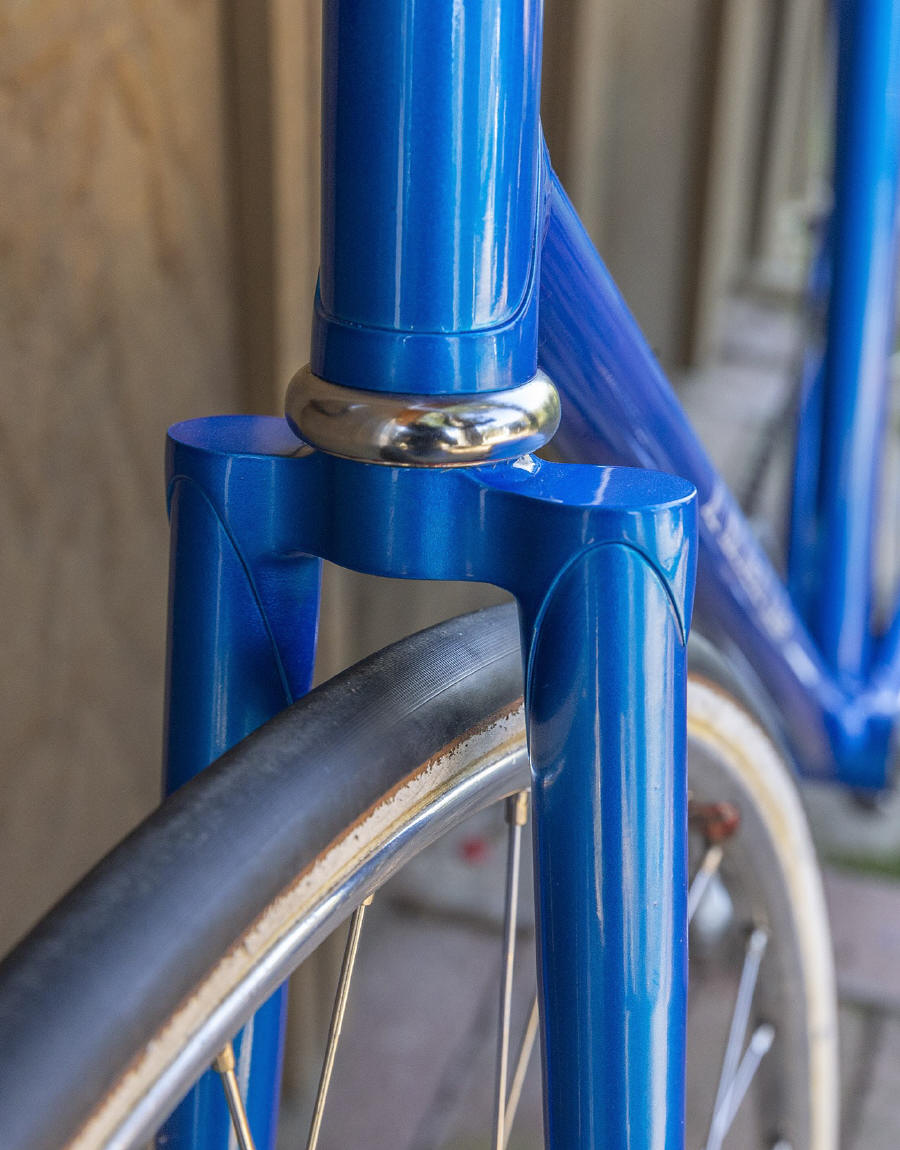 “…made in 1978…bought it back from the original owner, looks like he did not use it. The fenders were Bluemels and were brittle so I put some alloy fenders on. I also put new tires on, although it had the originals . The cage is also new. The racks were made by me, along with the 31 tooth front chainring. The wheels are 700c. Even he bar tape is original. The bike is my size!”