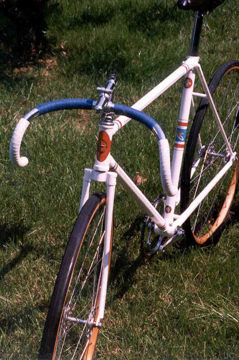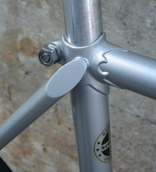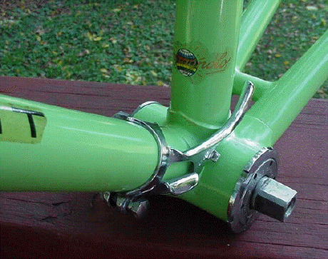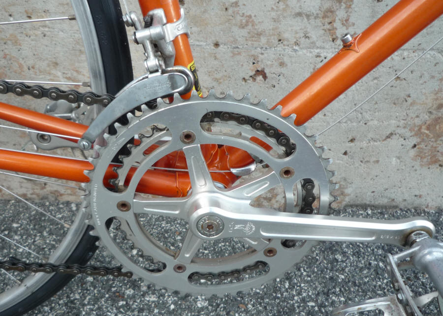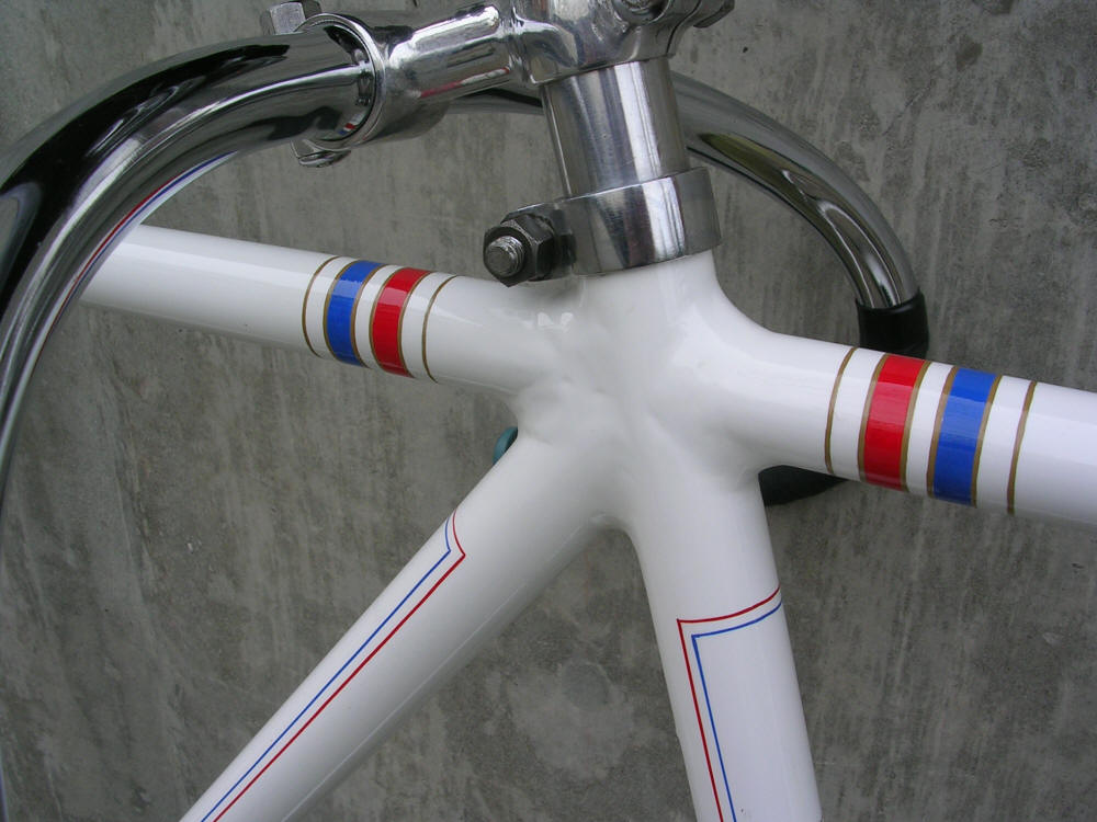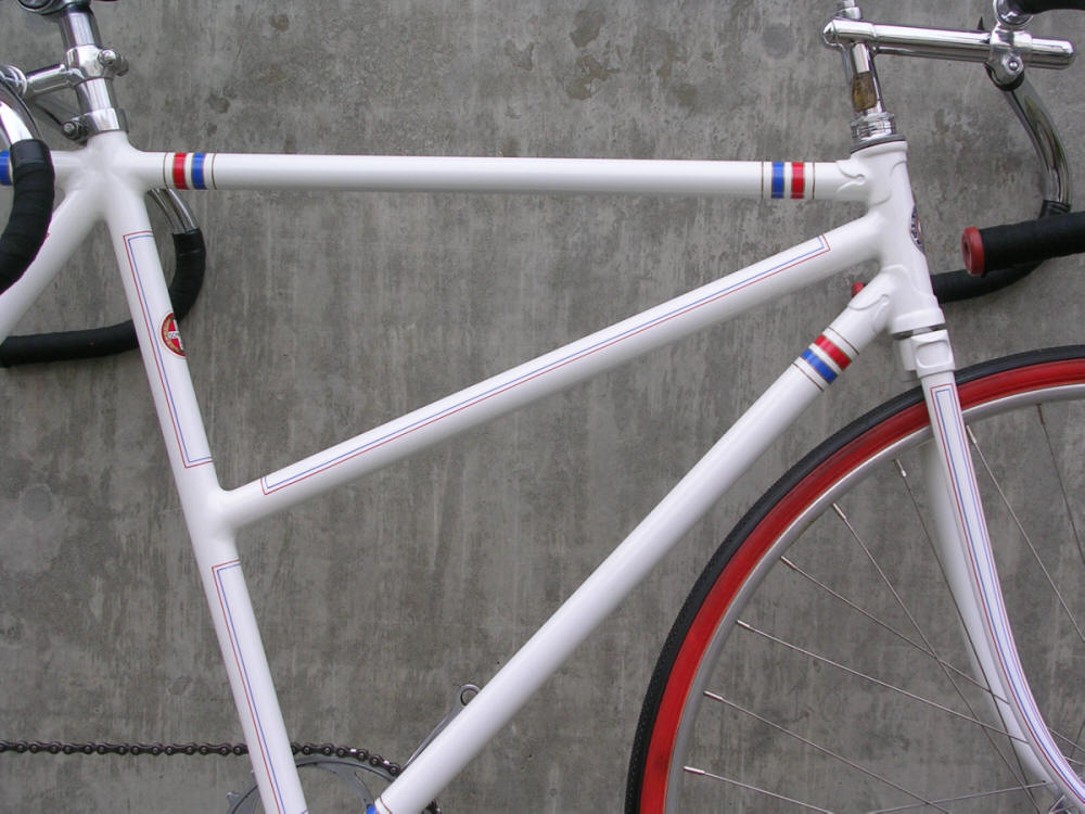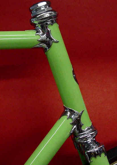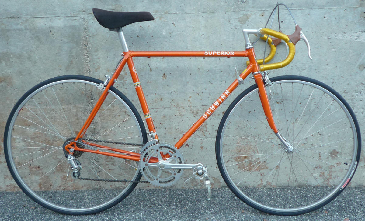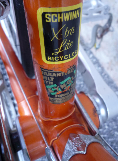 Built using frames and frame components (Nervex lugs and Reynolds 531 tubing) that were remaining when Schwinn stopped Paramount production in Chicago (due to quality issues) in 1979. Constructed by Don Mainland a Schwinn sub-contractor in Racine, Wisconsin. Don and partner Roger Nelson had a machine shop that built about 40% of the Paramount frames during the ’70s bike boom. Many of the full chrome Paramounts were built by Mainland; their brazing was better (less visible after chroming) than those that were done in Chicago.