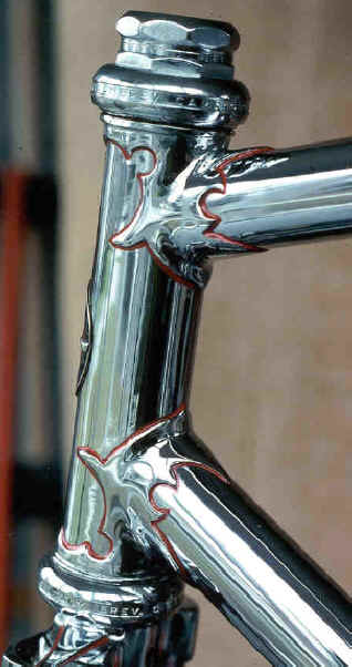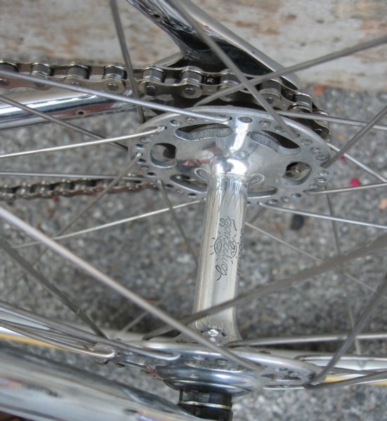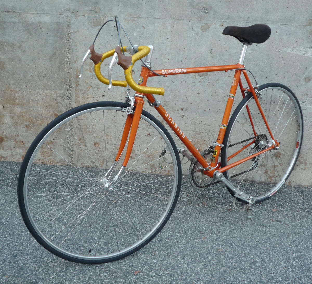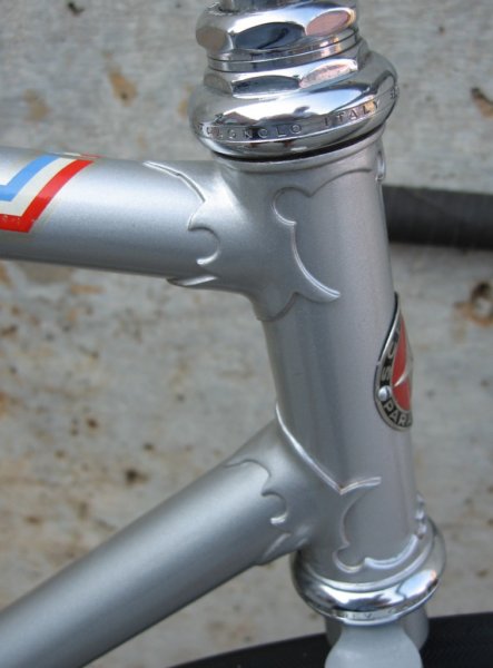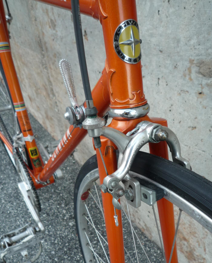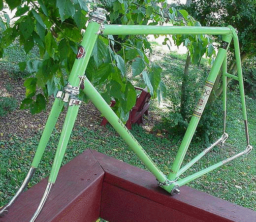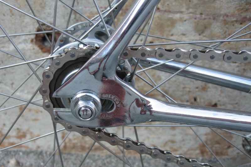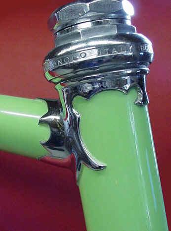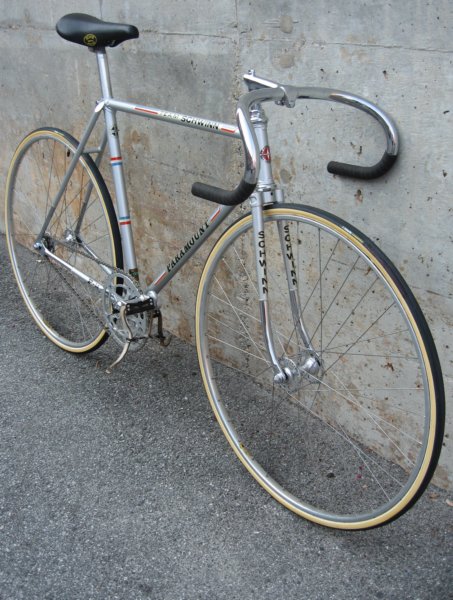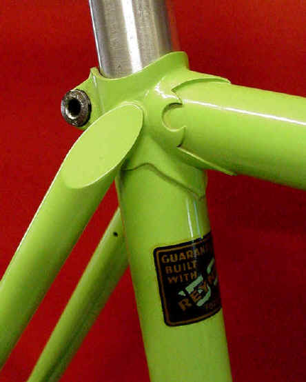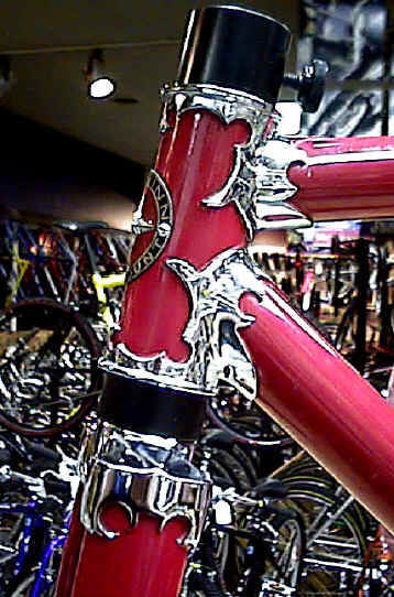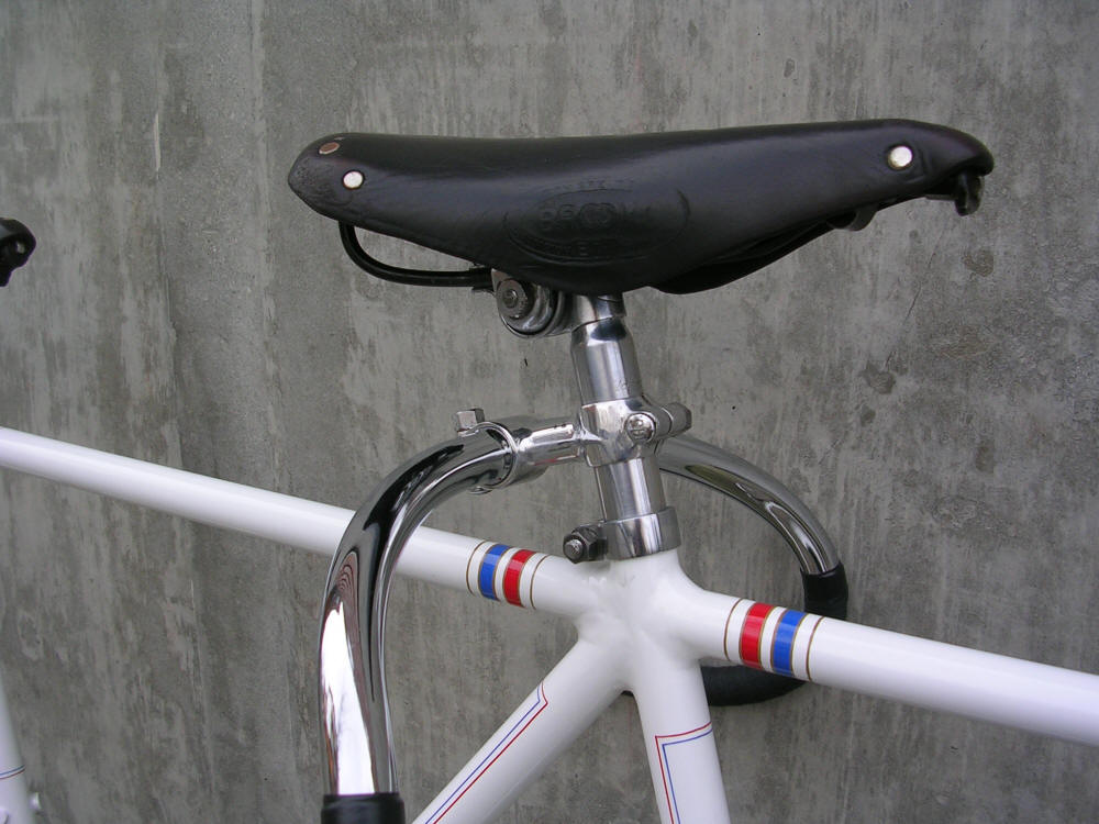 Built using frames and frame components (Nervex lugs and Reynolds 531 tubing) that were remaining when Schwinn stopped Paramount production in Chicago (due to quality issues) in 1979. Constructed by Don Mainland a Schwinn sub-contractor in Racine, Wisconsin. Don and partner Roger Nelson had a machine shop that built about 40% of the Paramount frames during the ’70s bike boom. Many of the full chrome Paramounts were built by Mainland; their brazing was better (less visible after chroming) than those that were done in Chicago.