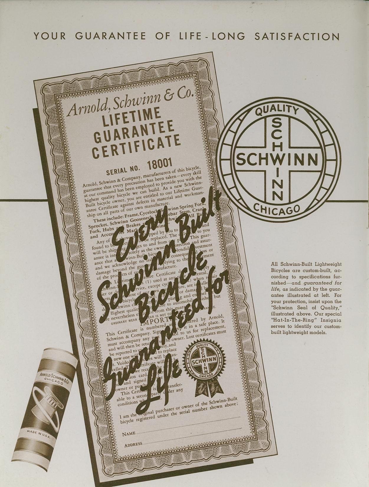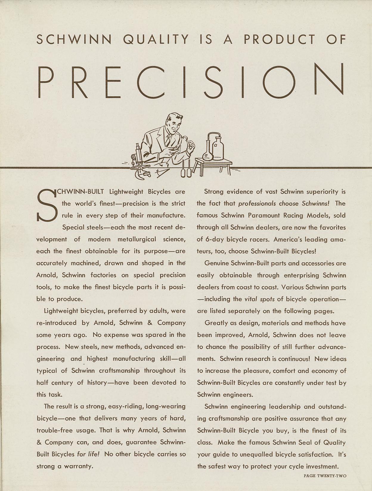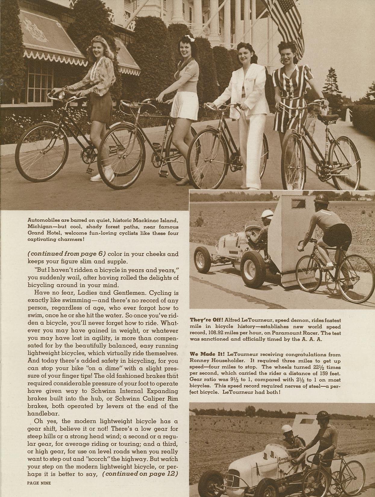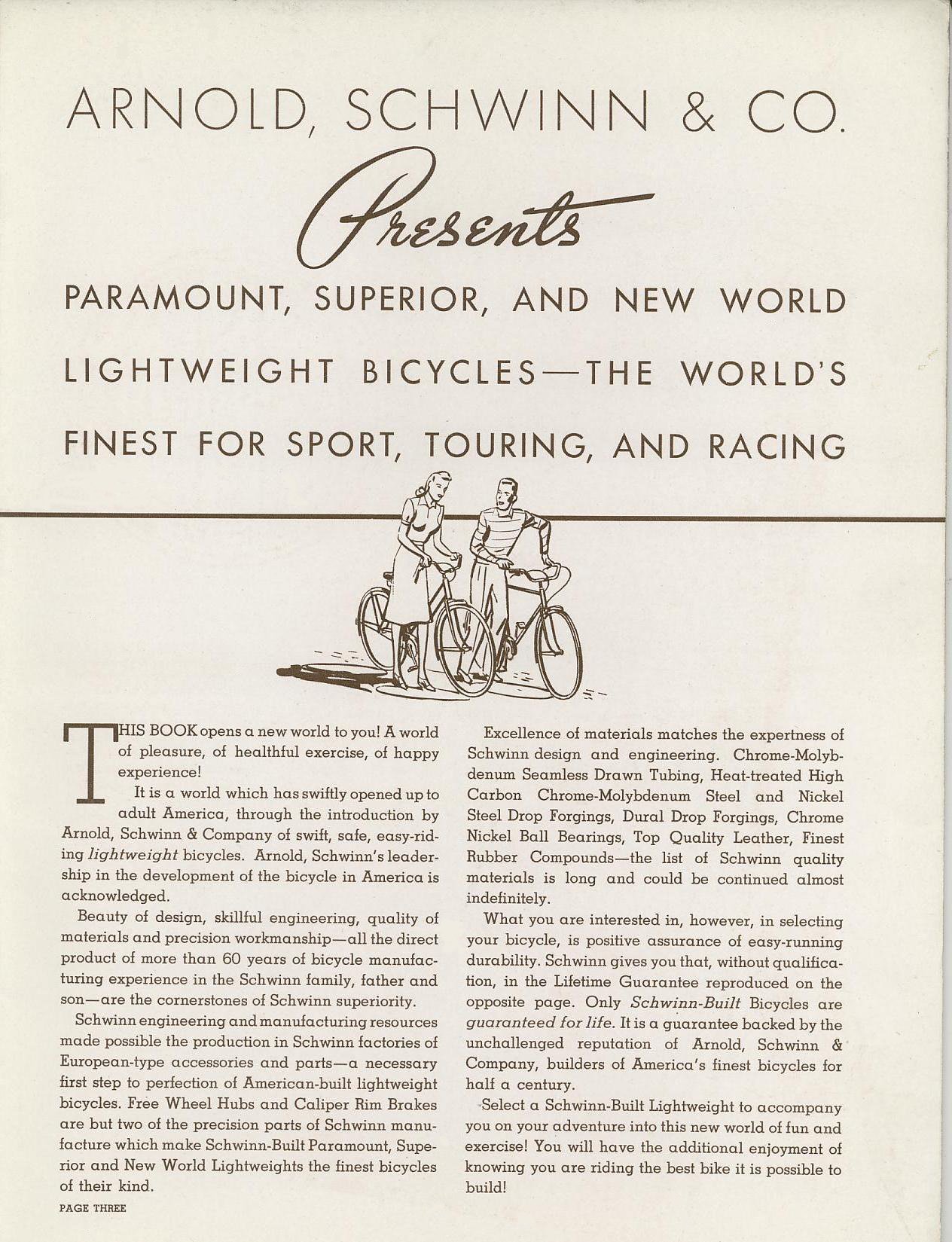 ‘I recommend Schwinn-Built bicycles not only to the racing men but to every cyclist who wants a lightweight, light running, substantial bicycle with correct lines and the best equipment.’ “