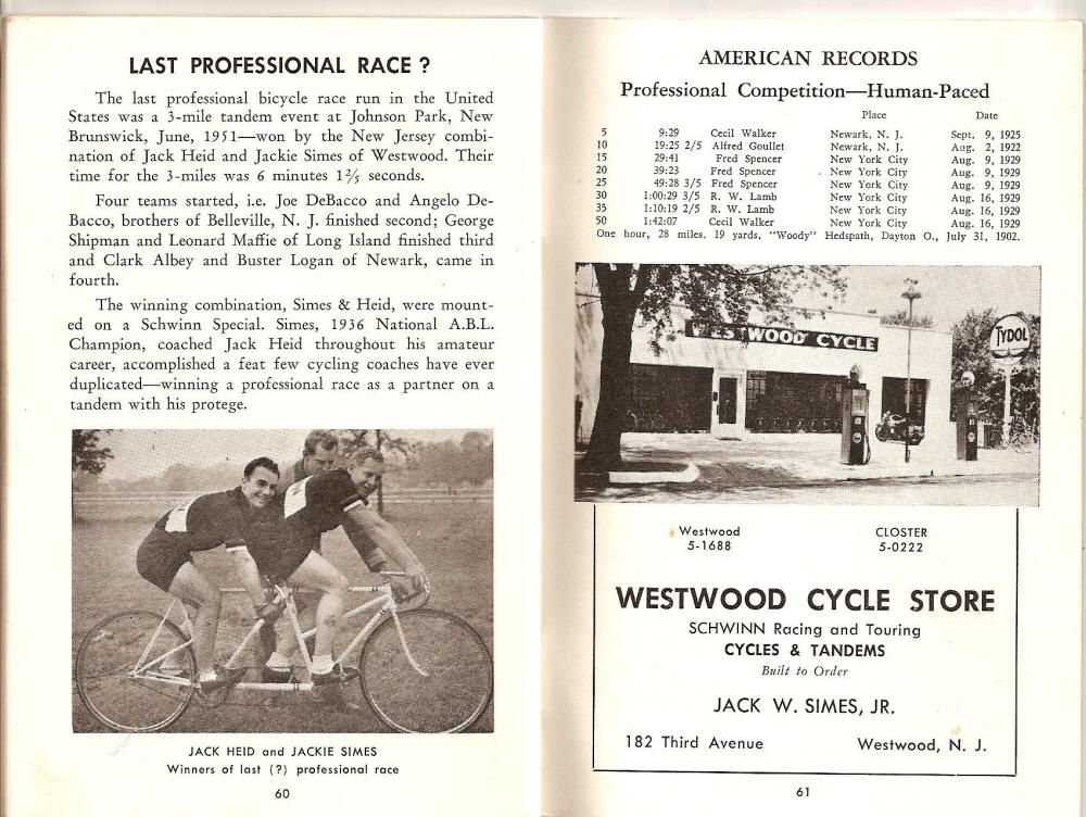 ‘This past season, we had 18 to 20 Schwinn Paramount Racers on the track.What the boys call their No. 1 bikes have gone approximately 10,000 miles each or a total of over 90,000 miles in the 13 races, and I have yet to replace a worn or detective part. Not a single frame broke, and I honestly believe the strength of these frames saved the boys from serious injury many times, because we had an unusual number of bad spills during the season.