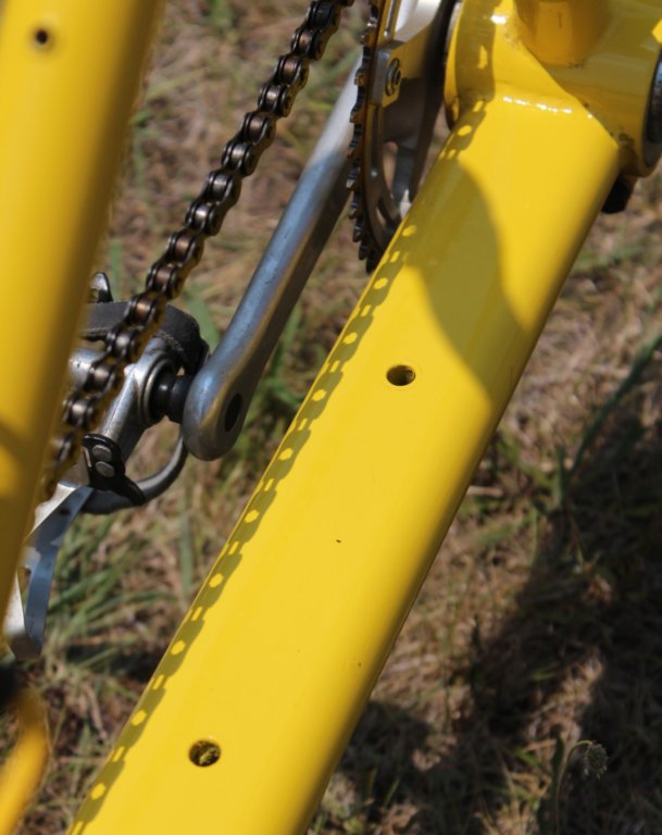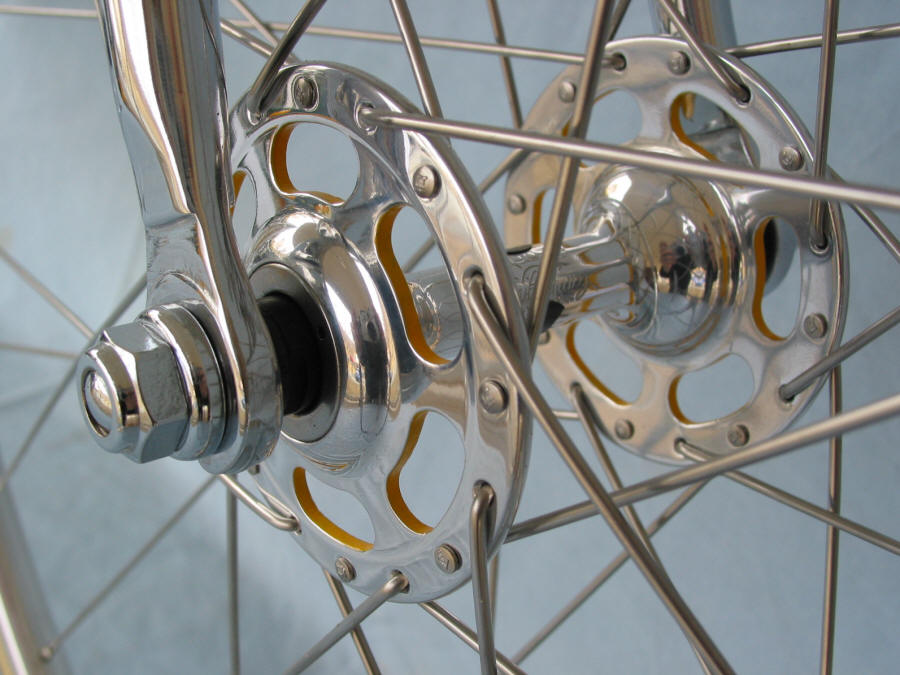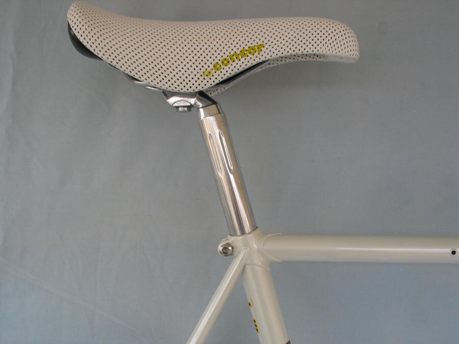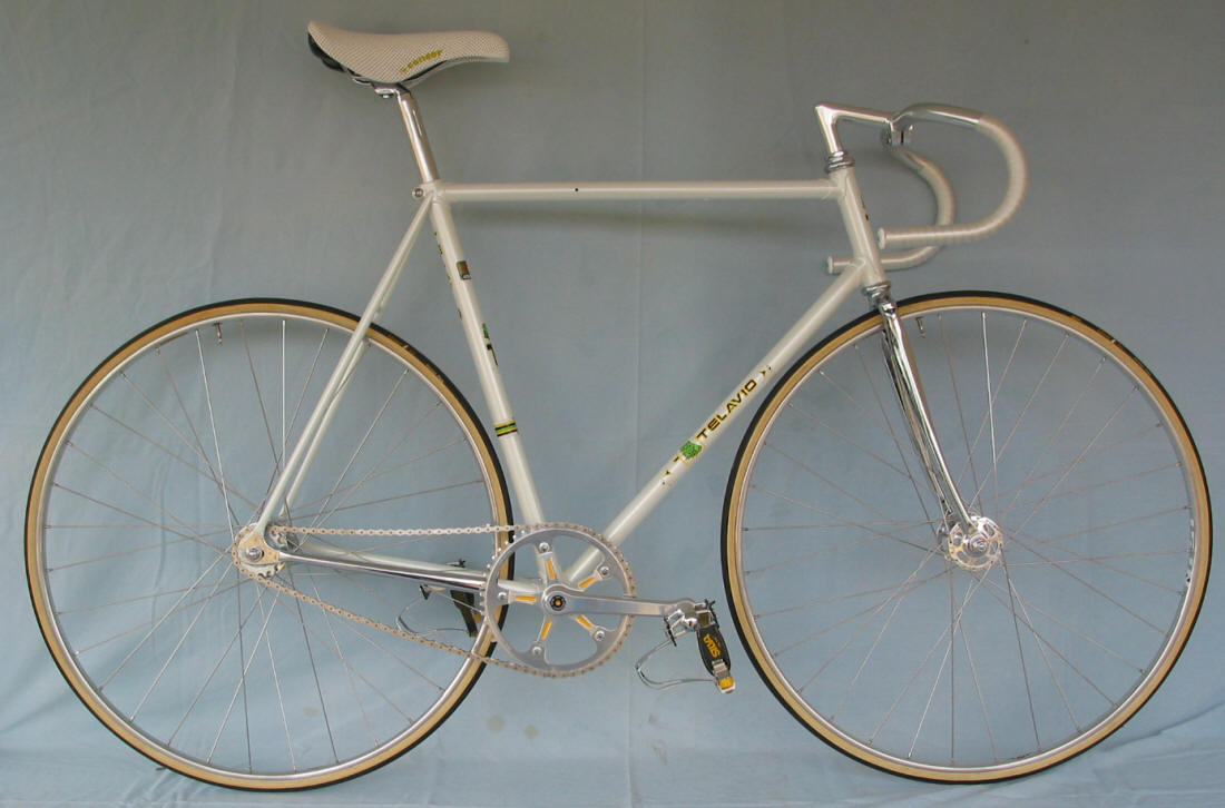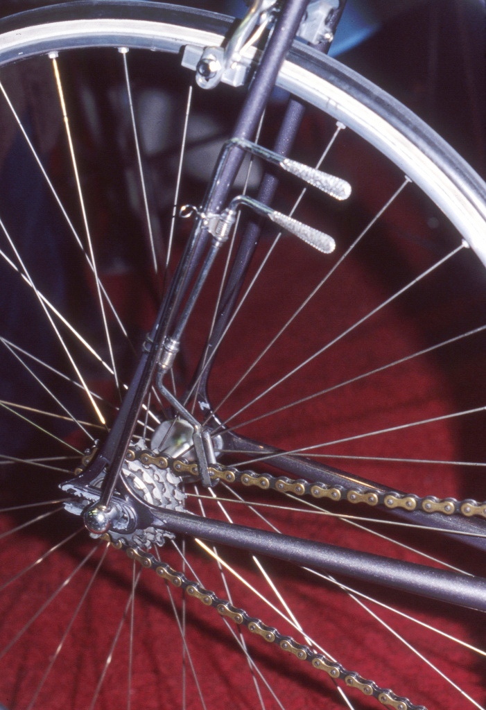 Pino Morroni was working on innovative ways to lighten and improve bicycles long before aftermarket lightweight gadgetry was readily available. He is pictured above with his lugged and brazed titanium track bike. Yes, that was BRAZED! In cooperation with Cecil Behringer, he devised a special “silver solder” type method to join the temperamental titanium tubes!
