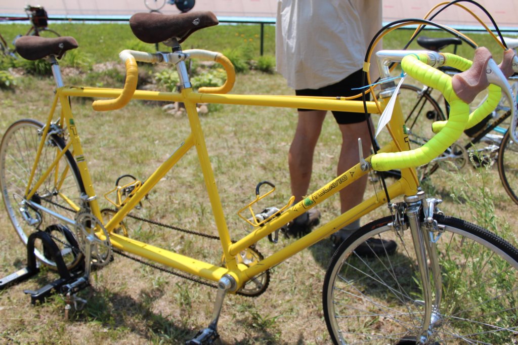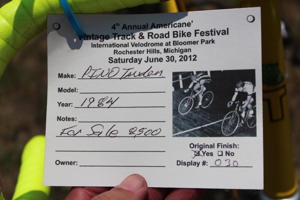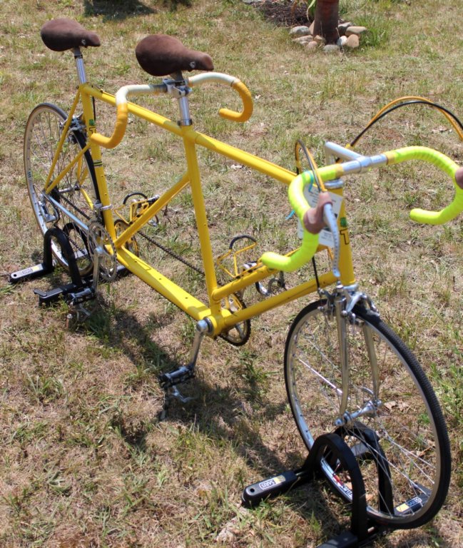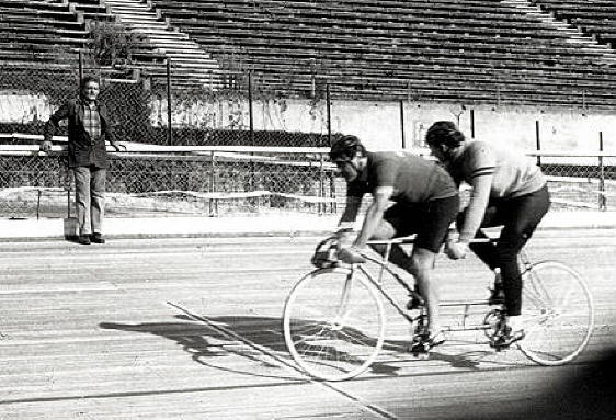 (32 times Champion of Italy) & stoker test his prototype tandem. (look closely at the arrangement of tubes.)